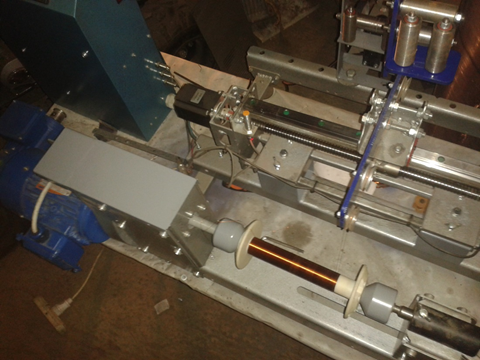 Машина работает с контроллером по отслеживанию провода, автомат, полуавтомат с участием оператора, ручная. В процессе намотки и изменением количества витков, ширины, шага (диаметр проволоки), изменение включено. Сохранение программ включено. Установка и съем кассеты намотанной, ручная (автомат опция). Домотка, точная остановка по виткам, метры (калибровка по метрам через энкодер с редуктором доп. опция). Оправки на катушки до 110мм диаметр. Размоточное устройство встроено в станок МН-1.5-300 весом (до 20кг).